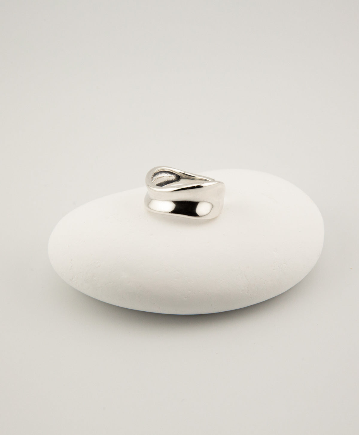 Inspired by fluid movement, this open-ended design brings effortless elegance to any look. Made with sterling silver. Adjustable ring size from 5-8.