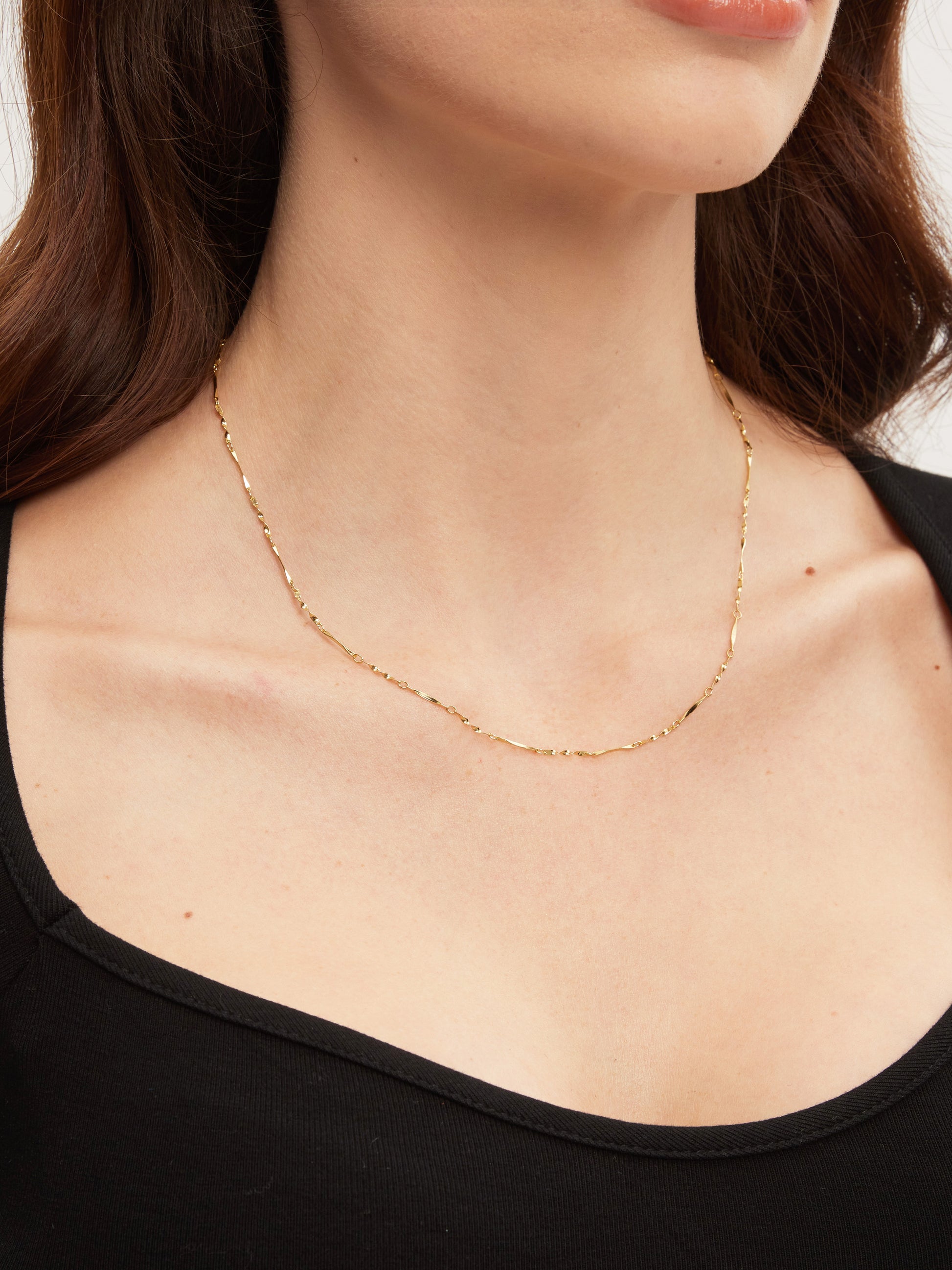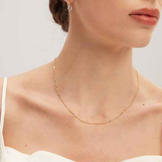 Inspired by scattered starlight, the Starlit Bar Necklace features delicate beads and organic bar links for a subtle yet eye-catching shimmer.