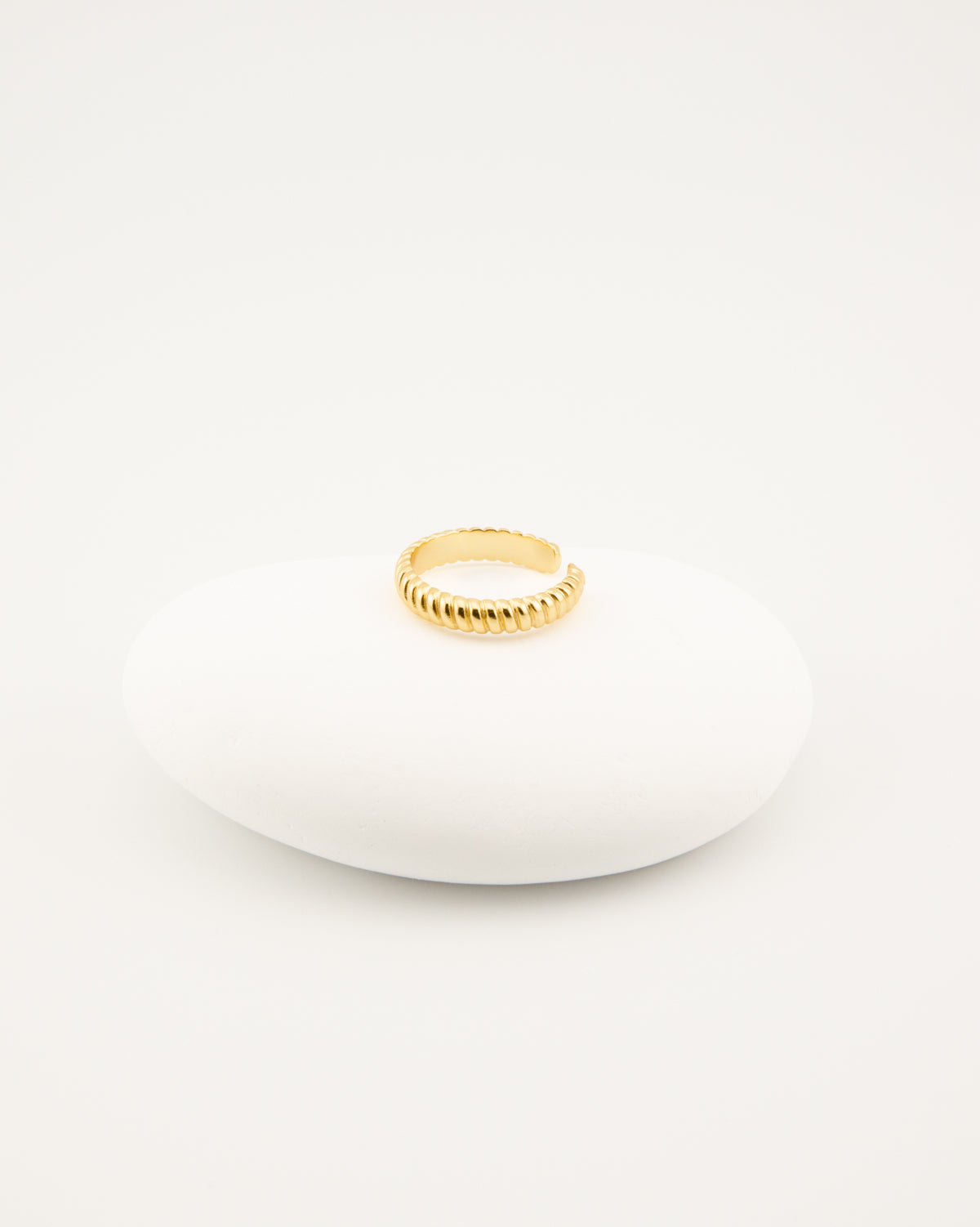 A thin, sleek, spiraled design that adds a subtle twist to your style. Crafted from 925 sterling silver with 18K gold vermeil. Default size is 6, with an adjustable fit from size 4 to 7.