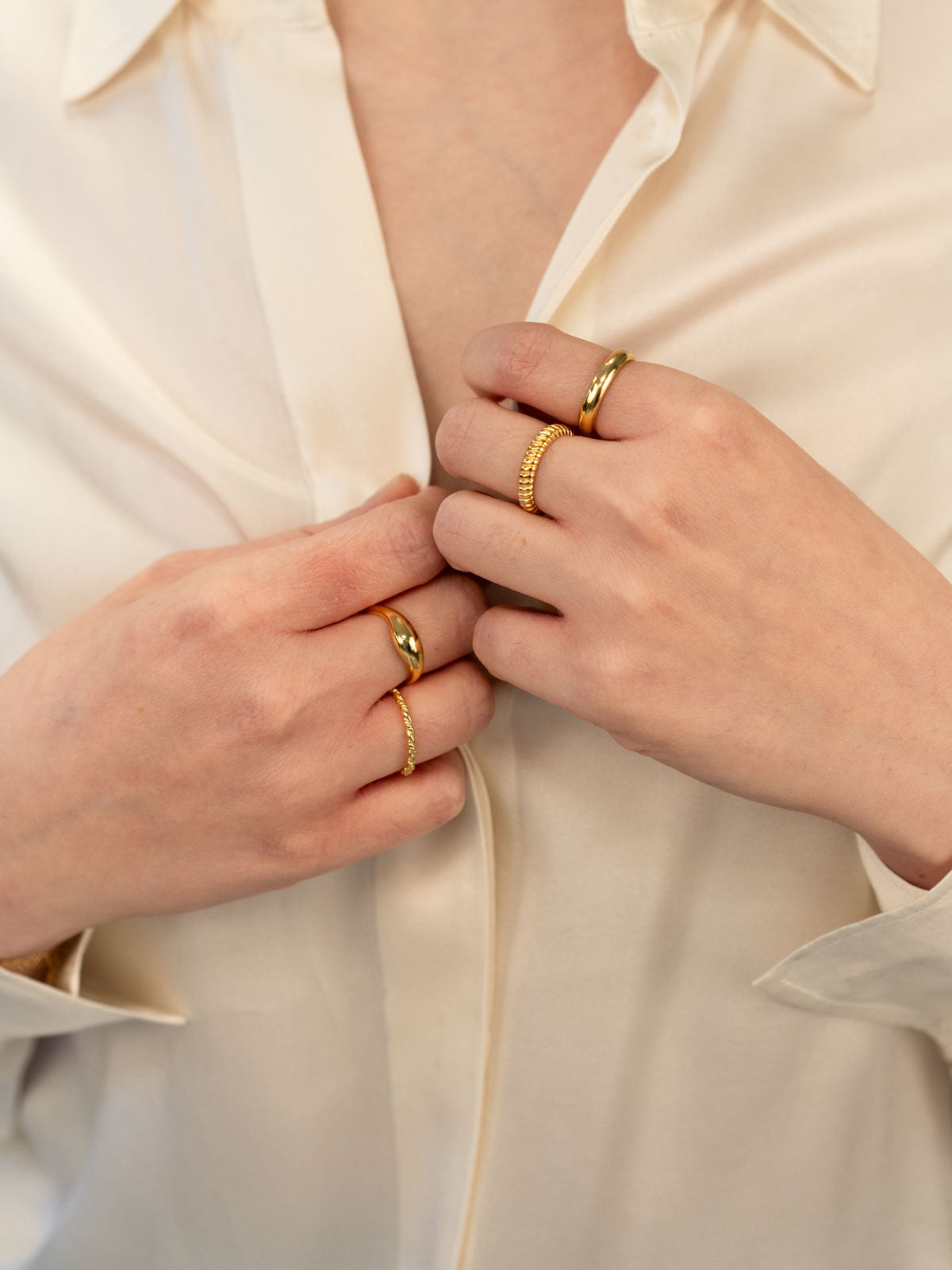 Inspired by the gentle curves of ocean waves, the Wave Ring features a sleek, organic design for a modern yet timeless look. Made from 18k gold vermeil over 925 sterling silver, it offers durability and everyday elegance.